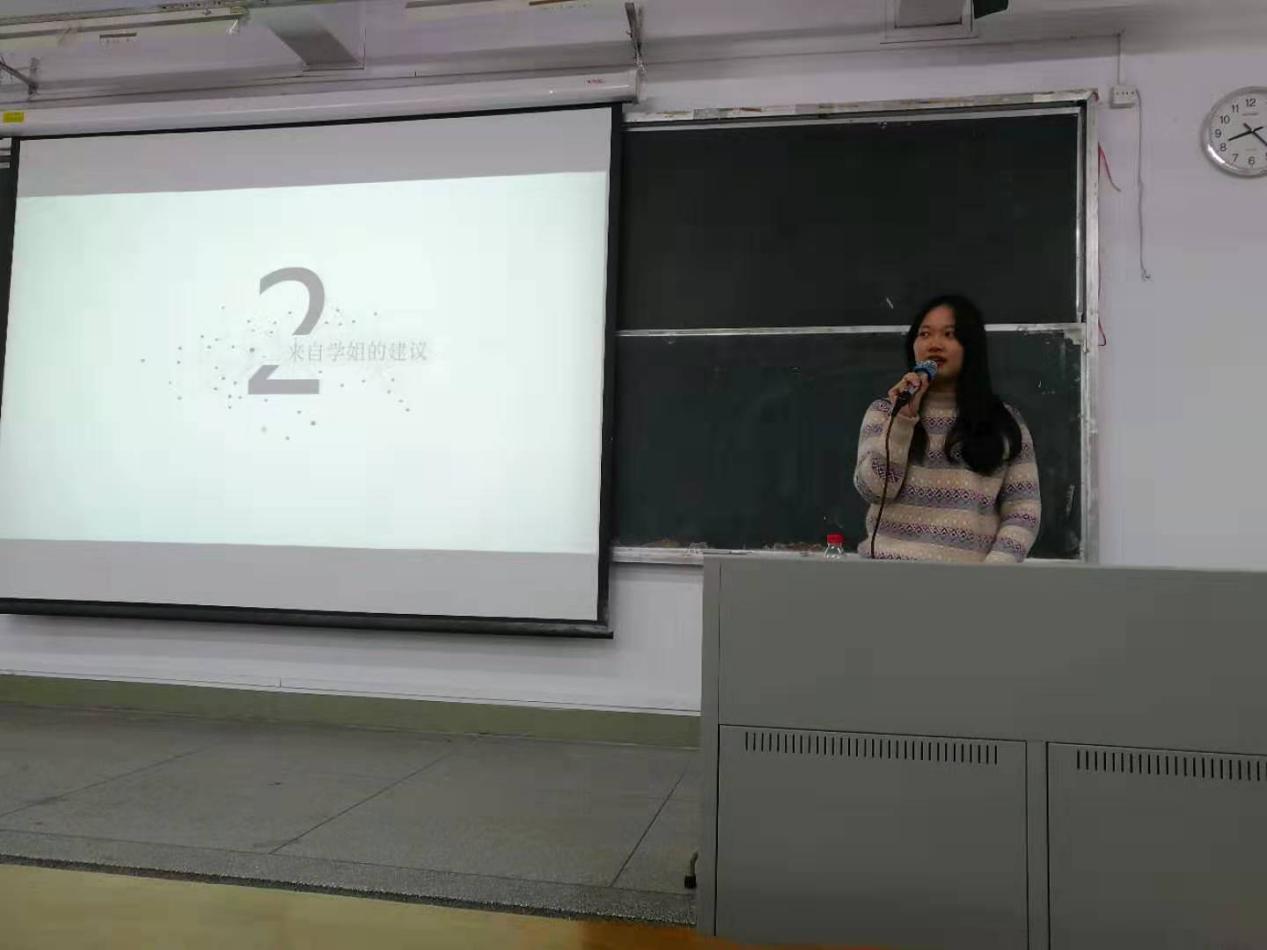 会议分为三个流程,首先由各班级优秀代表为大一学生分享经验。他们用考公务员、考研和担任班干部的经历,展示积极的学习心态,鼓励师弟师妹们做好大学规划。另外,他们希望师弟师妹努力学习获取荣誉和相关证书,鼓励同学们参加学校比赛,并且学会劳逸结合,协调学习与工作。