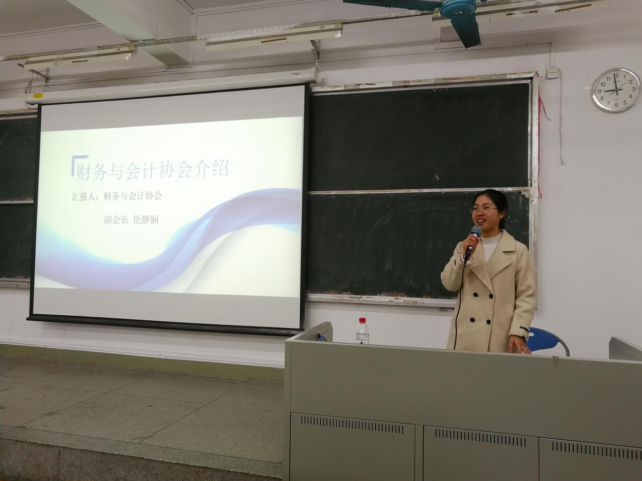 接着,伦静娴介绍协会的情况以及本学期的工作计划。财务与会计协会自创办以来,开展过各项大小型活动,如“财会杯”、会计师分享会、初级会计考前培训等,为广大仲恺学子提供全方位、多层次、宽领域的专业性服务,曾获得校级“优秀类别协会”荣誉称号,管理学院会计系也曾授予“专业负责,金牌服务”荣誉称号。另外,伦静娴以自身经历告诉同学们珍惜每一次可以进步的机会,多参加活动,与其它高校学生交流,拓宽自身视野。