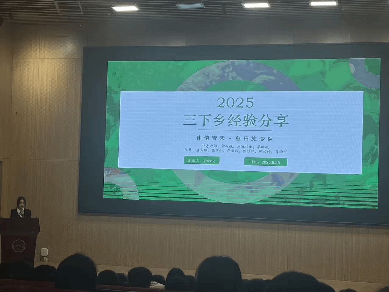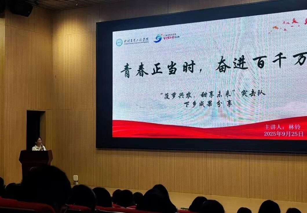 2025年9月25日,“菠萝兴农,甜享未来”突击队、“白沙兴,仲有爱”突击队、“穗跃龙胜队”及“仲恺青禾・曾田旅梦”团队在管理学院新生入学教育会议上分享乡村振兴实践经验。管理学院党委书记柯锦泉、党委副书记郭肖明、辅导员郭英聪,钟萍、荆昊昊,陈琛,郑冬怡,金晨晨及25级新生共同参加了此次会议。此次分享既展现了青年扎根基层的实干风采,也为新生传递责任担当,为后续实践提供方法与范本。
