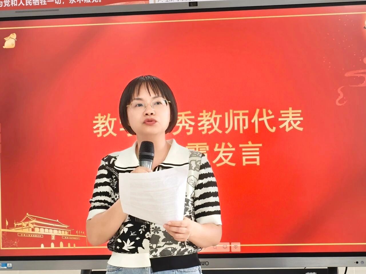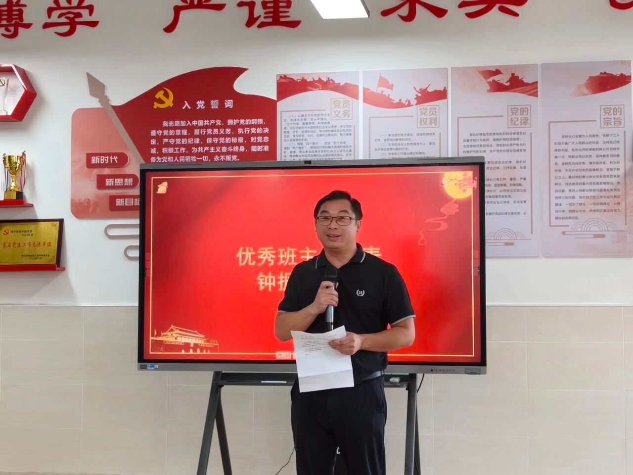 在此环节中,优秀班主任代表钟振强分享班级管理经验。他提出,班主任需秉持“以心换心”理念,站在学生视角思考问题,密切关注学生的成长发展,同时进一步加强班级建设、完善班级奖励机制、增进班级学生间的交流互动。优秀教师代表陈春霞则分享了对教育工作的收获与感悟,她强调,教育是“一个用灵魂唤醒另一个灵魂”的过程,教师应满怀教育热忱,尊重每一位学生,携手培育优秀人才。