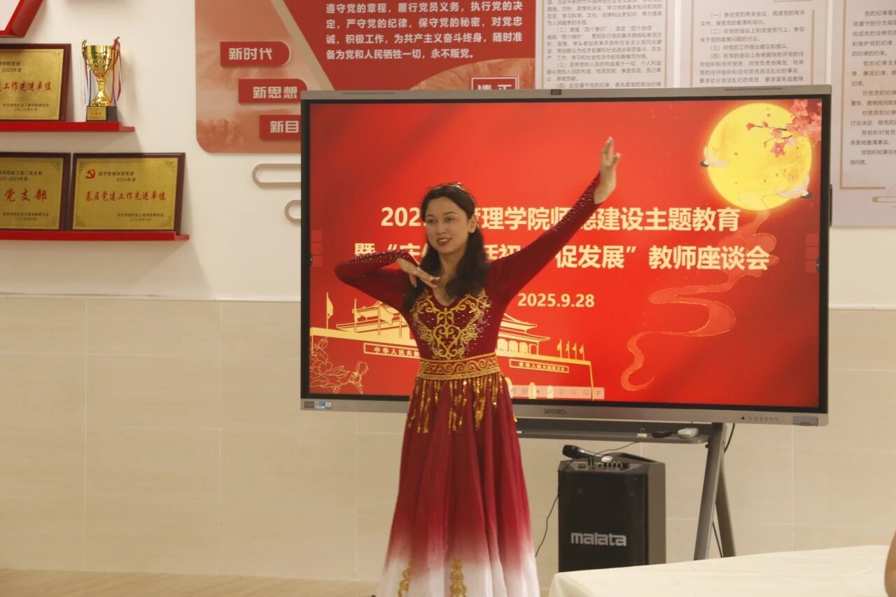 座谈会临近尾声,管理学院学生代表为在场教师献上精心编排的舞蹈与歌唱表演。温情满满的演出不仅为本次师德建设座谈会增添人文色彩,更拉近师生距离,充分彰显学院和谐融洽的育人氛围。