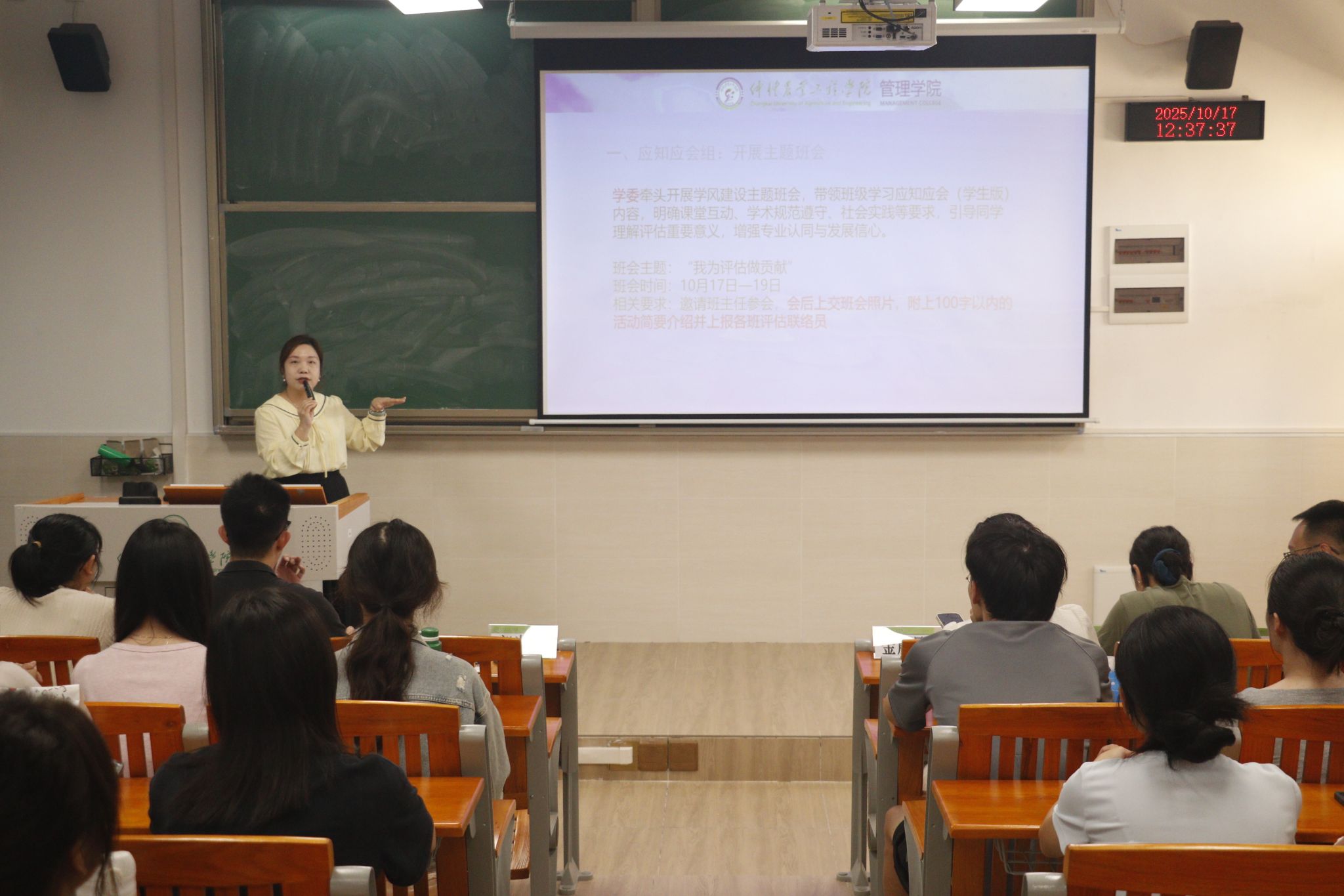 为全面迎接本科教育教学审核评估工作,动员全院师生迎评促建,管理学院于10月17日在经管楼召开本科教育教学审核评估动员会。学院党委副书记郭肖明、全体辅导员、各年级主要学生骨干参加了本次会议。