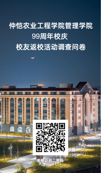 本次校友返校活动意见征集,我们已定制《管理学院99周年校庆校友返校活动意见征集问卷》线上调查问卷,诚邀各位校友点击下方链接或扫描二维码,进入问卷填写页面,畅述你的想法与期待: