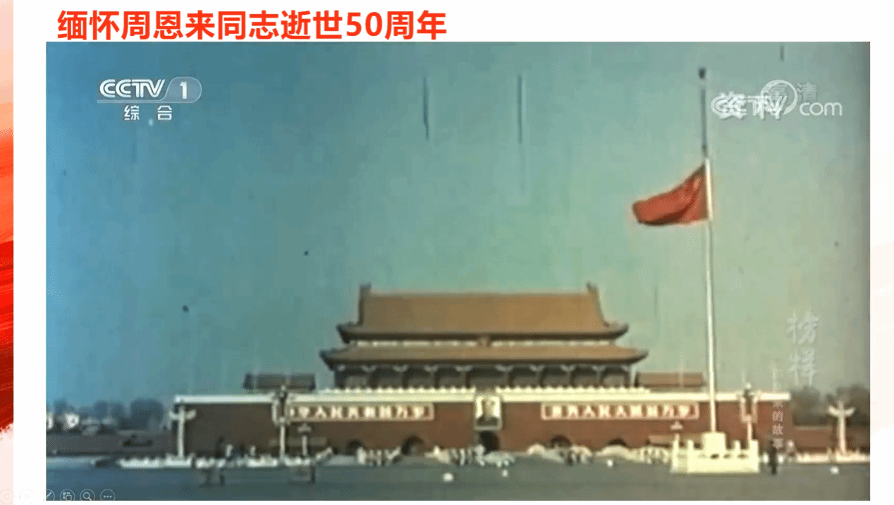 理论武装头脑,榜样引领前行。微党课第二部分,全体党员通过观看视频深切缅怀周恩来同志逝世50周年。周总理逝世后,骨灰撒向祖国山河,践行"鞠躬尽瘁,死而后已"的誓言。"十里长街送总理"的动人场景,见证了人民对他的深切爱戴。斯人已逝,精神永存。周总理厚植人民情怀、坚定理想信念、锤炼过硬本领的崇高风范,激励着新时代青年党员传承红色基因,在民族复兴征程中书写无愧于人民的青春答卷!