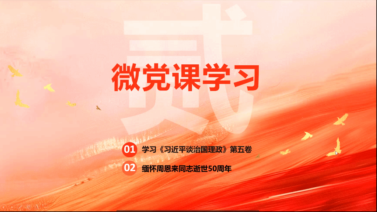 党日活动第二部分以微党课形式深入开展理论学习与精神传承。微党课第一部分中,全体党员围绕《习近平谈治国理政》第五卷开展专题学习。本次学习聚焦“大力发展全过程人民民主”这一专题,引导党员深刻把握中国式现代化的时代方位,深入理解高质量发展的战略部署,坚持以人民为中心的发展思想,进一步增强了运用党的创新理论指导实践的政治自觉和行动自觉。
