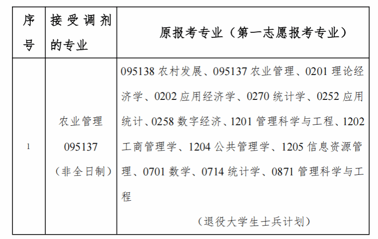 3.农业管理专业只接受报考“退役大学生士兵计划”的非全日制考生,进入复试的基本要求参照《2026 年全国硕士研究生招生考试考生进入复试的初试成绩基本要求》(A 类考生),总分降低 10 分,单科线降低 8 分。