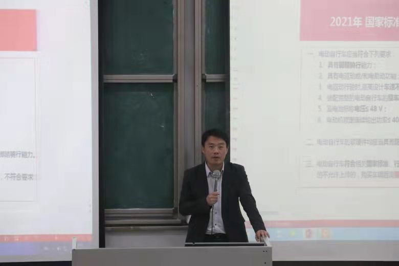 郑冬怡给大家介绍了我院电动自行车的基本情况,并结合近期身边发生的典型案例,给同学们敲响警钟。同时,也警醒大家不要违反学校、学院的相关规定,要做到规范充电,安全出行。