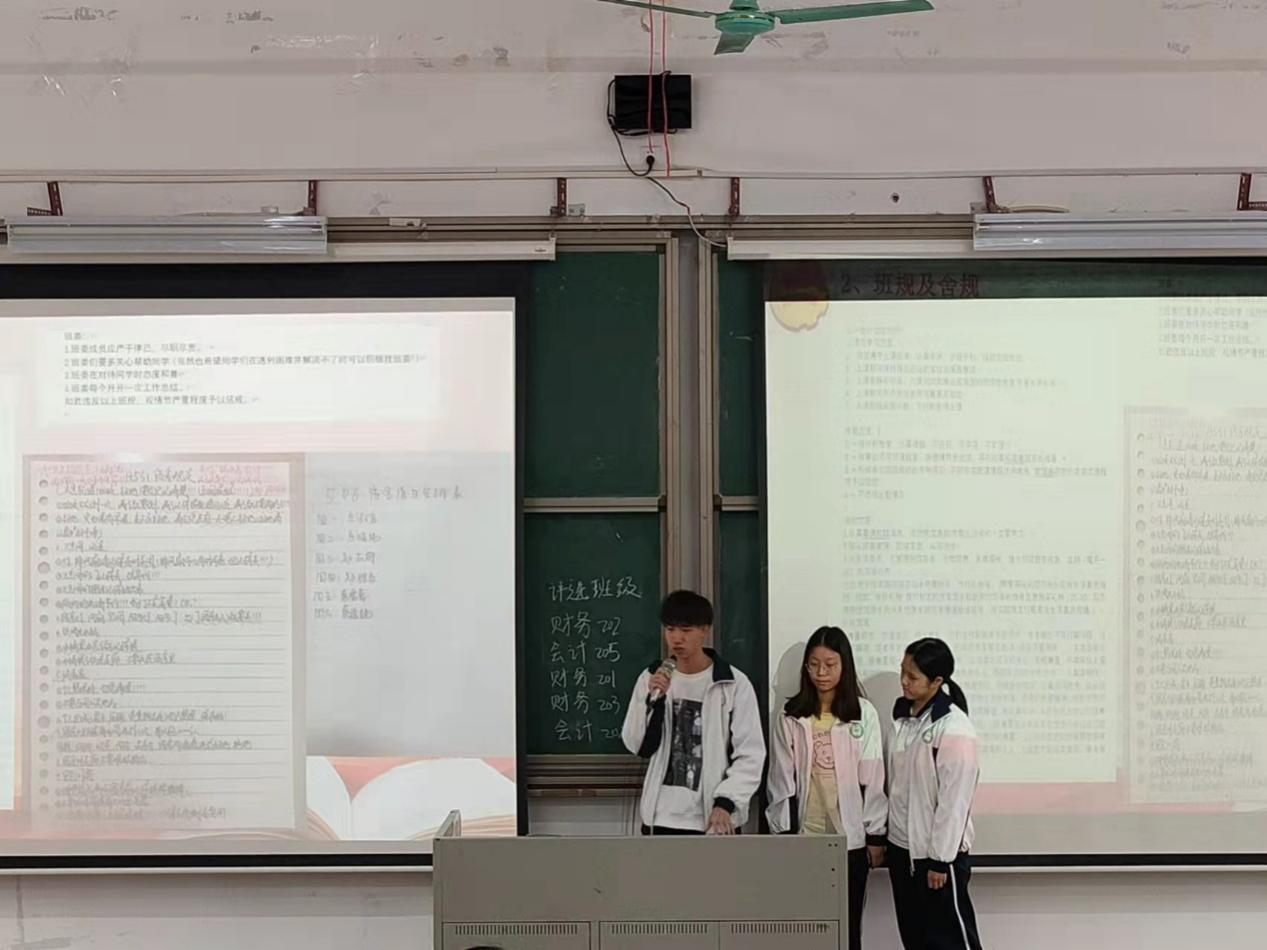 本次入围优秀班集体评选的班级有会计181、会计183、财务181、工管181、会计191、会计192、会计194、财务191、工管193、会计202、会计205、财务201、财务202,财务203等班级。活动期间,各班代表上台进行PPT展示和答辩,围绕班风建设、学习建设、思想建设和文体建设四个方面,充分展示班级的竞选优势。