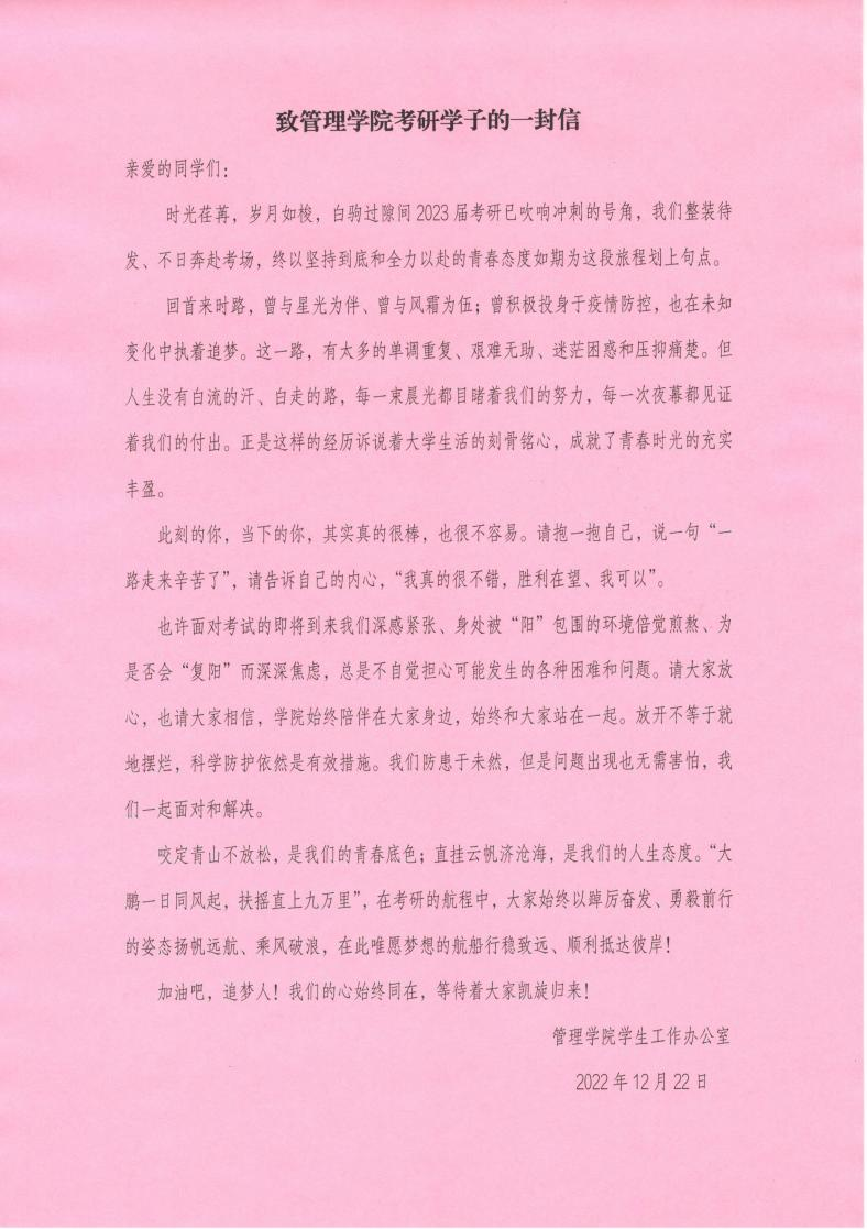 (礼物含有考试文具套装和致管理学院考研学子的一封信)