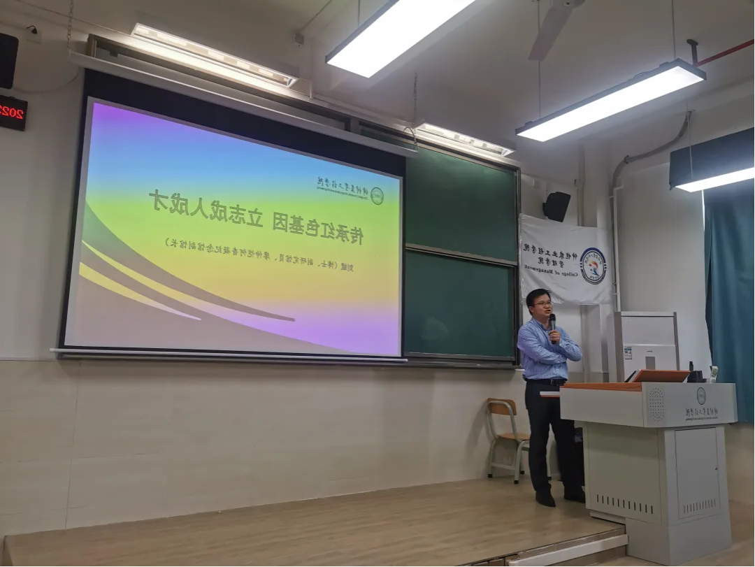 刘斌以形象易懂的语言,清晰的逻辑启发学员更好地学习和理解红色基因的范围定义以及红色基因与革命精神的区别,期间提到“红色是中国共产党和中华人民共和国最鲜明的底色”,道出红色基因的基本概念是指中国共产党带领中国人民进行斗争这一奋斗历程所产生的精神财富,并指引学员从校训“注重实践,扶助农工”中感悟我校所蕴含的红色基因,将红色基因与校史校情有机结合。