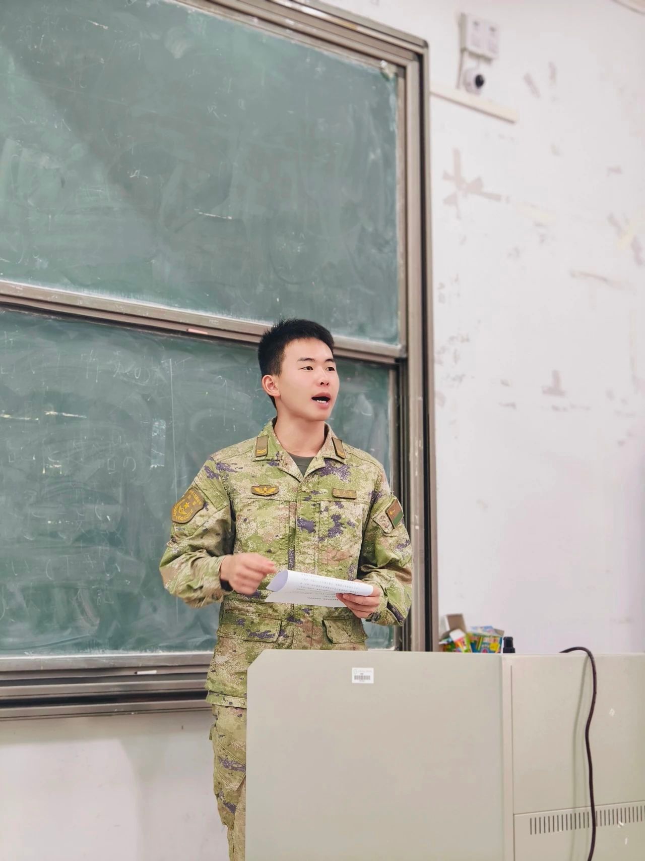 入伍的第一天或许很多人都忘不了,种科211班郑传虹同学也不例外,她向我们讲述了她第一天入伍的经历,寒风萧瑟,点验行李,吃泡面,立规矩,认识指导员焦力。随后向我们展示了新疆的生涯,分享她的训练日常和当话务员的经历以及她们的娱乐活动,也向我们展示了“天山南北”的朝霞和夕阳。最后,她耐心地向我们讲解女兵的入伍条件。