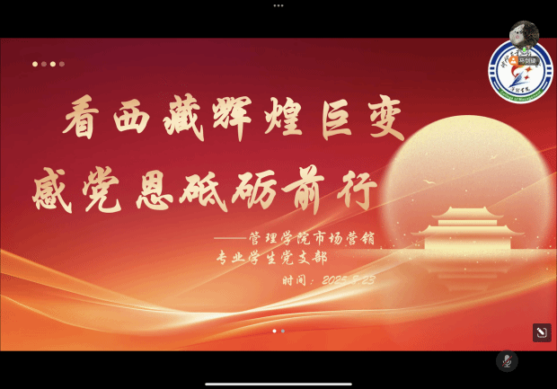 为传承红色基因、筑牢信仰之基,引导支部党员深刻体悟党的初心使命与历史必然,进一步增强历史自觉、坚定政治自觉,8月23日,市场营销专业学生党支部通过线上会议开展了“看西藏辉煌巨变,感党恩砥砺前行”主题党日活动。本次活动由支部书记郭英聪主持,全体党员积极参与。