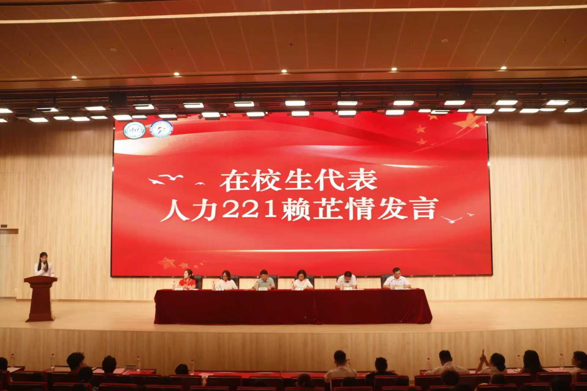 人力资源管理221班赖芷情作为在校生代表,分享了她的成长体会:在实践探索中,将课堂所学转化为解决实际问题的能力;在服务奉献中,她通过党组织工作和志愿服务找到了青春的价值,于2024年5月光荣加入中国共产党。