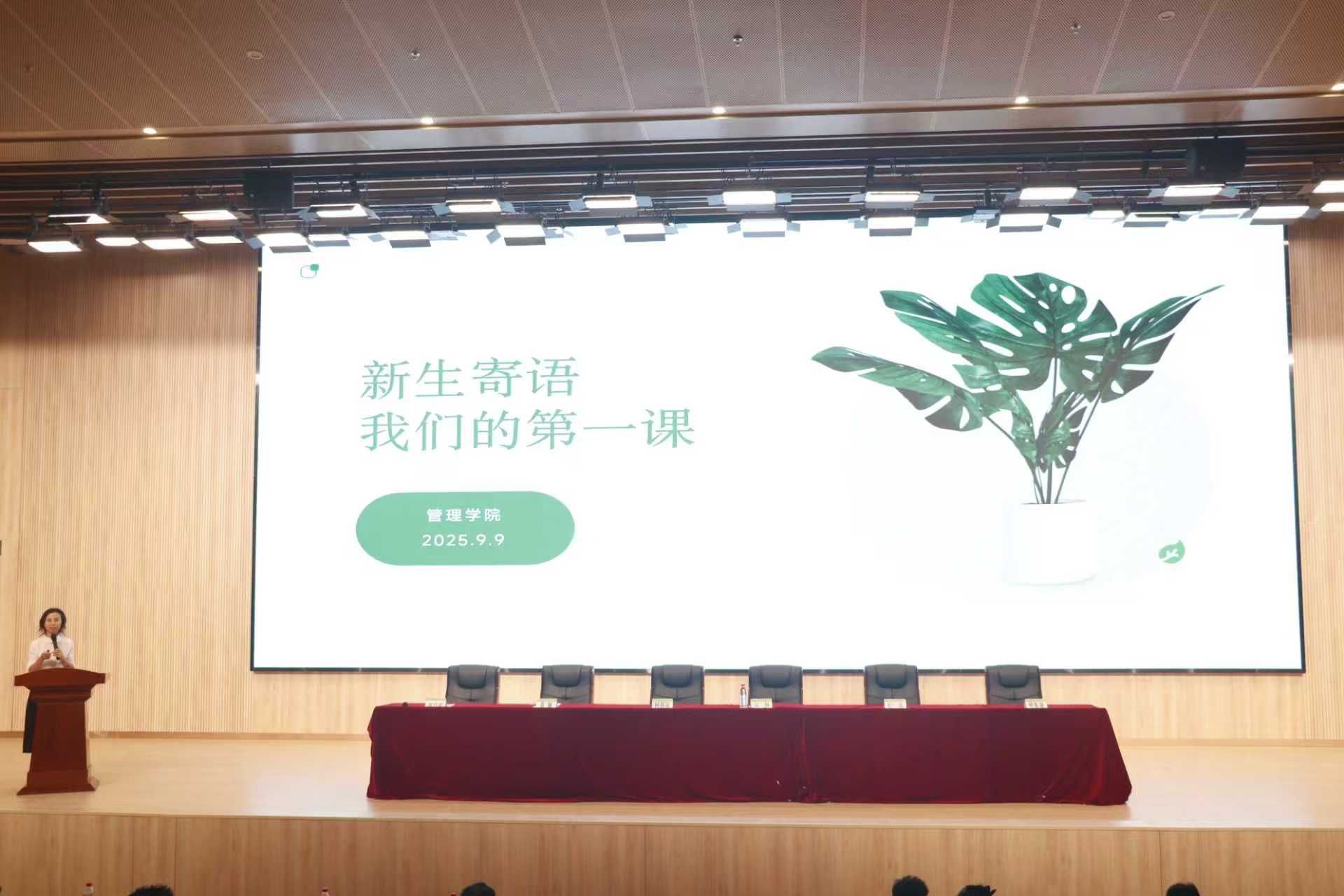 秋光正好,微风和畅。9月9日下午,管理学院2025级本科新生、专插本新生及研究生新生见面在图书馆报告厅隆重举行。学院党委书记柯锦泉、院长何琳、党委副书记郭肖明、副院长黄颖、程硕等参与了本次活动。会议由郭肖明主持。