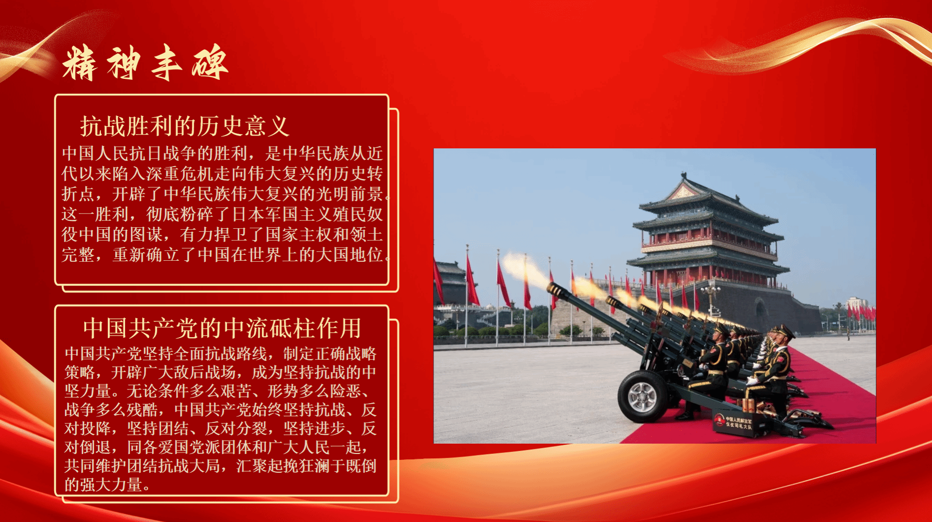 在“铭记历史,开创未来”的微党课上,支部党员陈家杨通过烽火岁月、精神丰碑、艺术史诗与青春担当四部分,带领全体党员重温抗战壮阔历程,感悟伟大精神力量。此次微党课以史为鉴、以艺润心、以责促行,不仅是一次深刻的爱国主义教育,更是对青年党员的鼓舞与激励。全体党员纷纷表示,将以抗战先辈为榜样,把精神力量转化为实干担当,让青春在全面建设社会主义现代化国家的火热实践中绽放绚丽之花。