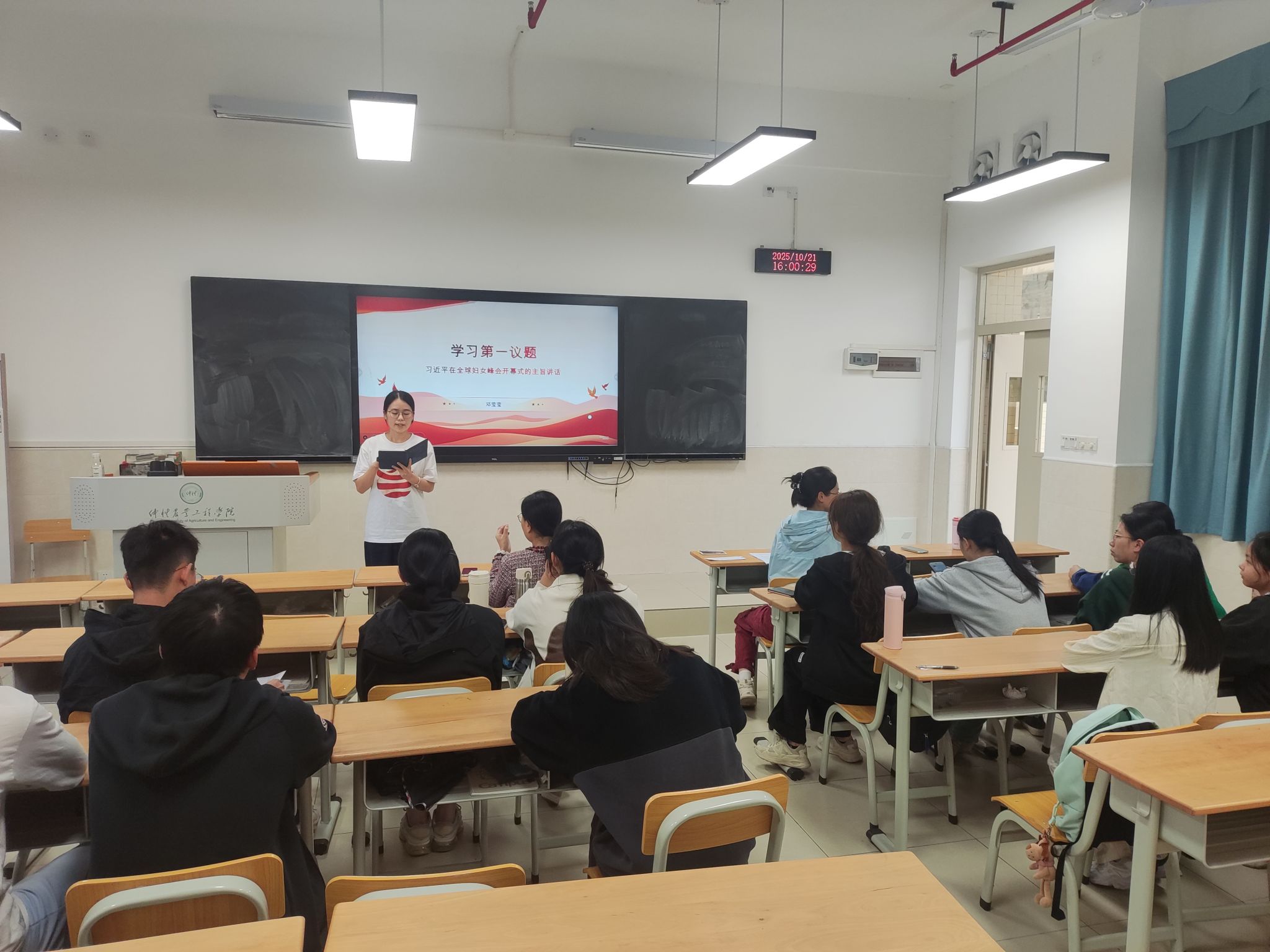 活动伊始,邓莹莹带领全体党员认真学习了习近平总书记在全球妇女峰会开幕式上的主旨讲话。党员们深刻感受到全球妇女事业的蓬勃发展,进一步认识到,站在新的历史起点上,我们更应传承和弘扬北京世妇会精神,为加速推动妇女全面发展贡献青春力量。
