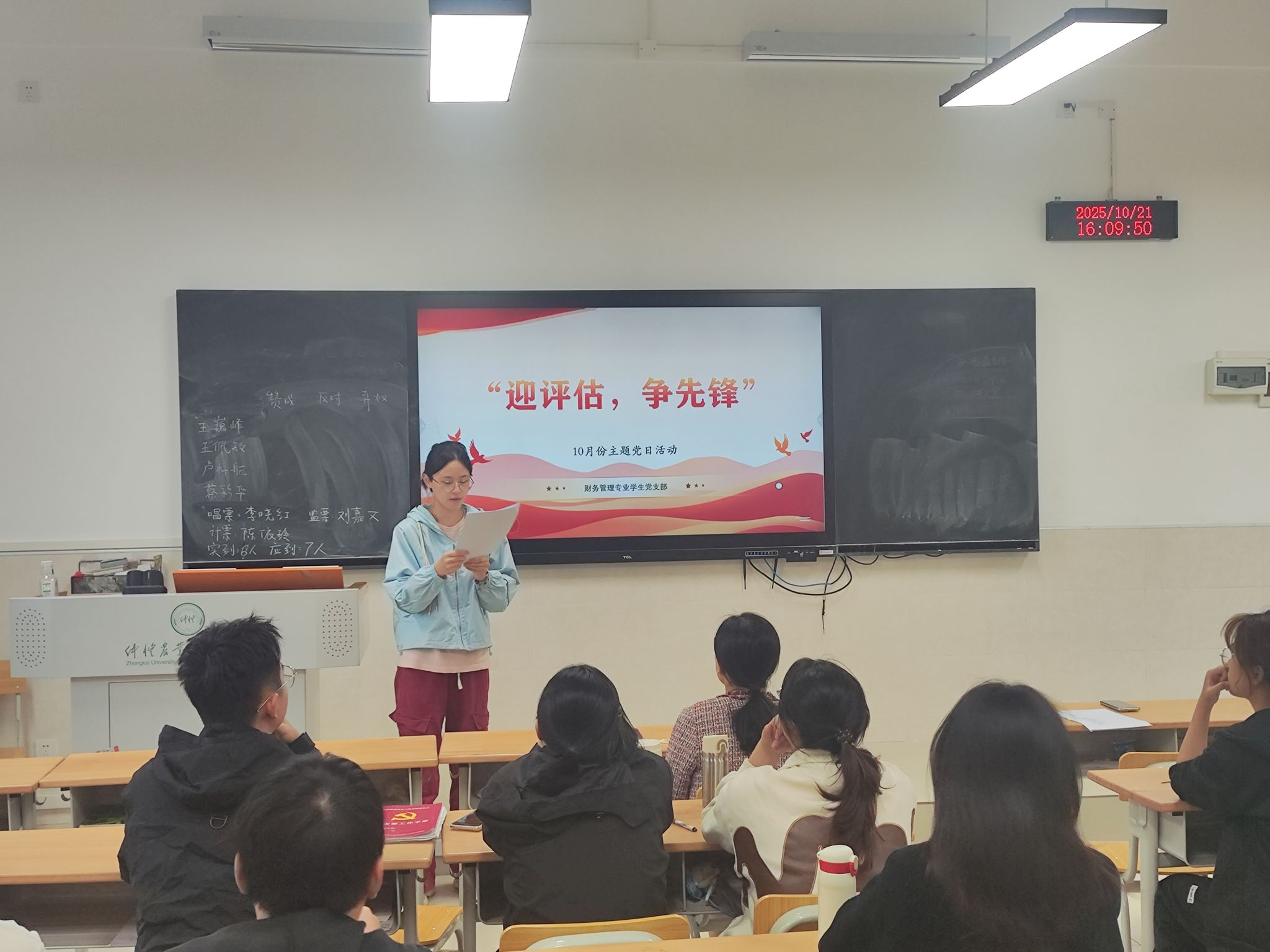 为深入学习掌握本科教育教学审核评估指标体系的具体要求,落实立德树人根本任务,10月21日下午,管理学院财务管理专业学生党支部于教学楼1栋301召开“迎评估、争先锋”主题党日活动。