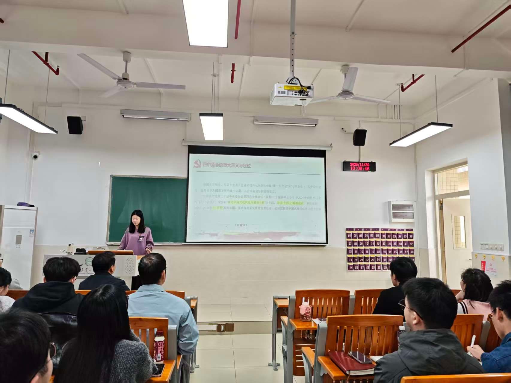 李湘以“深入学习领会二十届四中全会精神”为题讲授微党课。支部同志通过学习党的二十届四中全会的意义、定位与取得的重要成果等内容,更加深刻领会全会精神,进一步统一思想、凝聚共识,自觉提升党性素养。