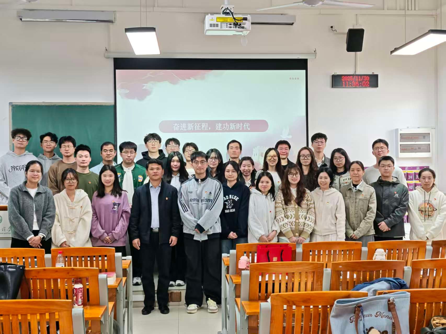 为深入学习贯彻习近平新时代中国特色社会主义思想,强化理论武装、凝聚奋进力量,管理学院研究生党支部于11月30日上午在教学楼①开展了“奋进新征程,建功新时代”主题党日活动。管理学院党委书记柯锦泉、研究生党支部全体党员及入党积极分子参加了本次活动。