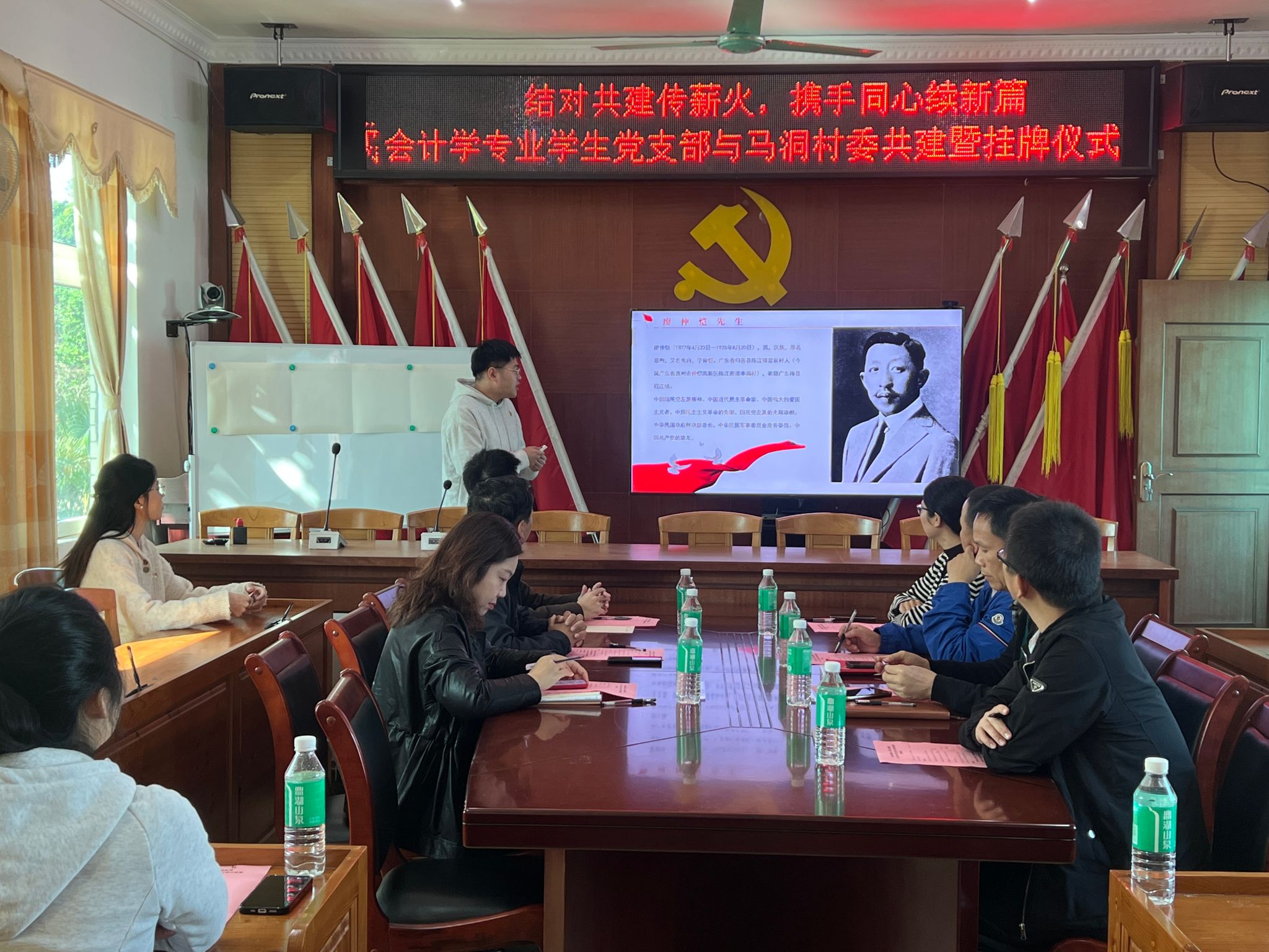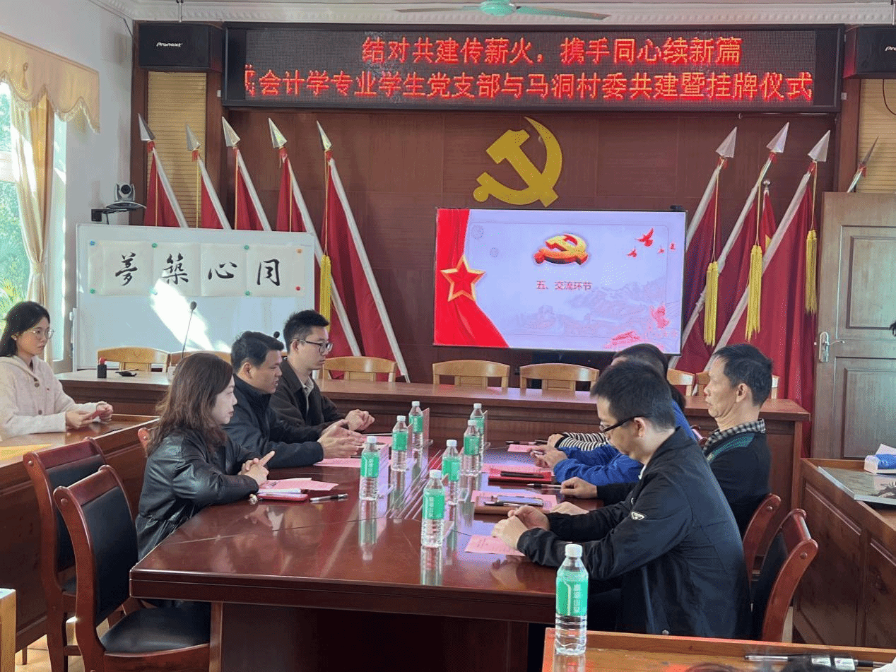 为深入学习贯彻习近平新时代中国特色社会主义思想,推动党的二十大精神在基层落地生根,2025年11月26日,马洞村党总支与仲恺农业工程学院管理学院会计学专业学生党支部在马洞村党群服务中心开展结对共建党日活动。