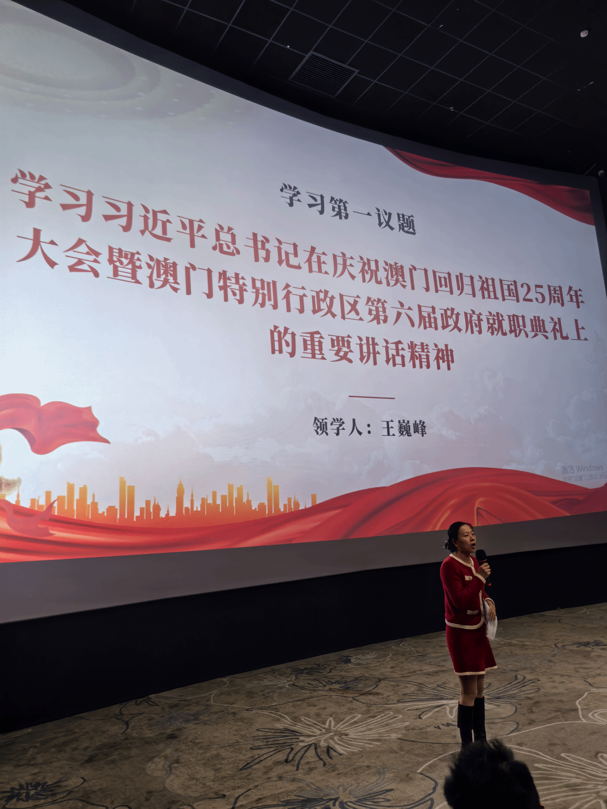 活动伊始,支部落实第一议题,由教工党员王巍峰老师领学,学习习近平总书记在庆祝澳门回归祖国25周年大会暨澳门特别行政区第六届政府就职典礼上的重要讲话精神。王巍峰提到,大家要深刻领会“一国两制”制度强大的生命力以及显著的制度优势,准确把握一国两制实践行稳致远的重要要求,充分认识青年在一国两制中的重要性。作为地处大湾区的高等院校青年学生,要坚定信心,以更加饱满的精神、昂扬的斗志,发挥党员的先锋引领、先锋模范作用,在我们党的事业和国家的事业当中贡献出来我们的应有之力。