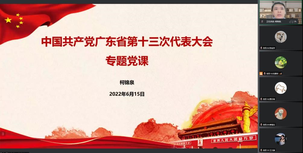 为深入学习贯彻中国共产党广东省第十三次代表大会精神,引导学生党员准确把握省第十三次党代会的精神实质与科学内涵,推动管理学院各项工作落在实处,6月15日,管理学院党委书记柯锦泉、党委副书记梁其才采用线上线下相结合的形式分别给财务管理专业学生党支部,人力资源管理专业学生党支部、德新学生党支部和工商管理专业学生党支部讲授专题党课,各学生党支部书记、党支部全体党员参加了此次学习。