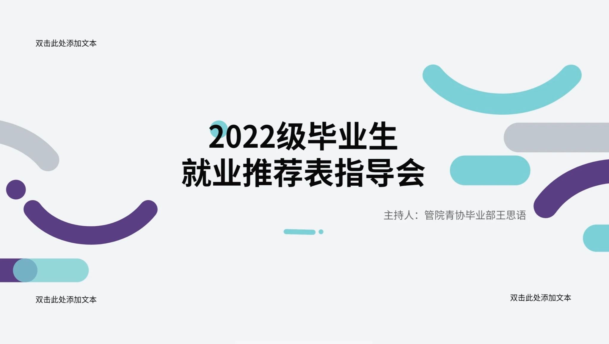 为推动管理学院毕业生实现更充分更高质量的就业,切实把毕业生就业服务工作做深、做细、做实,近日,管理学院通过线上会议召开了2022级信息员培训会。辅导员郑冬怡老师、青协毕业部干部及全体2022级信息员共同参加了本次会议。会议由青协毕业部部长王思语主持。