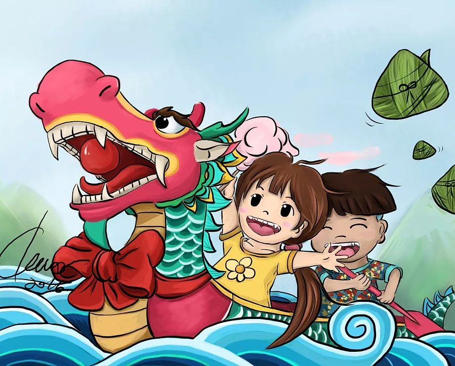 吃着粽子划着龙舟
