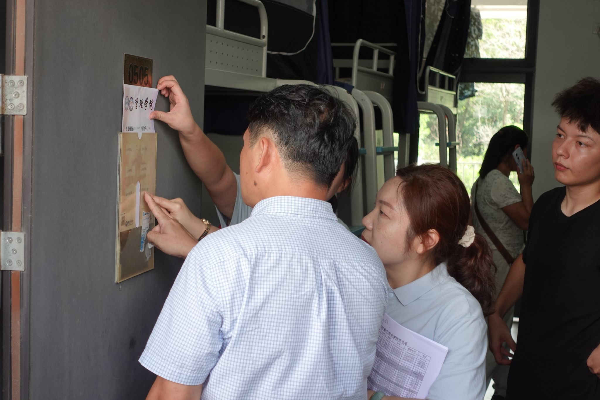 学校党委书记翟雪梅、副校长朱立学、管理学院党委书记柯锦泉、院长何琳、副书记郭肖明、副院长黄颖、副院长程硕及相关职能部门领导一行校亲临管理学院迎新现场,详细了解新生注册报到情况,与新生及家长亲切交流,慰问一线工作人员和志愿者。