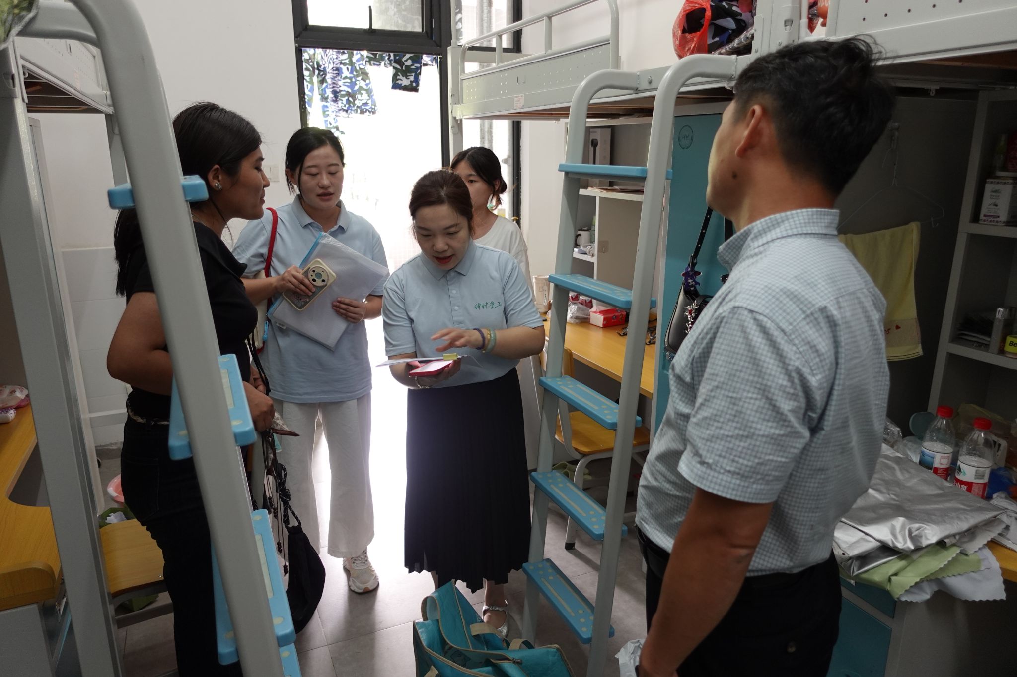 学院班子成员一行深入新生宿舍,实地察看同学们的住宿环境与生活条件。他们细致检查宿舍设施是否完善、环境是否整洁,重点关注水电安全、床铺桌椅等硬件配置,确保每一位新生都能安心入住。她们亲切询问新生对宿舍的满意度,并叮嘱相关部门务必做好后勤保障,为同学们营造安全、舒适、温馨的生活环境。此次走访充分体现了学校对新生生活起居的高度重视,将关怀落到实处。