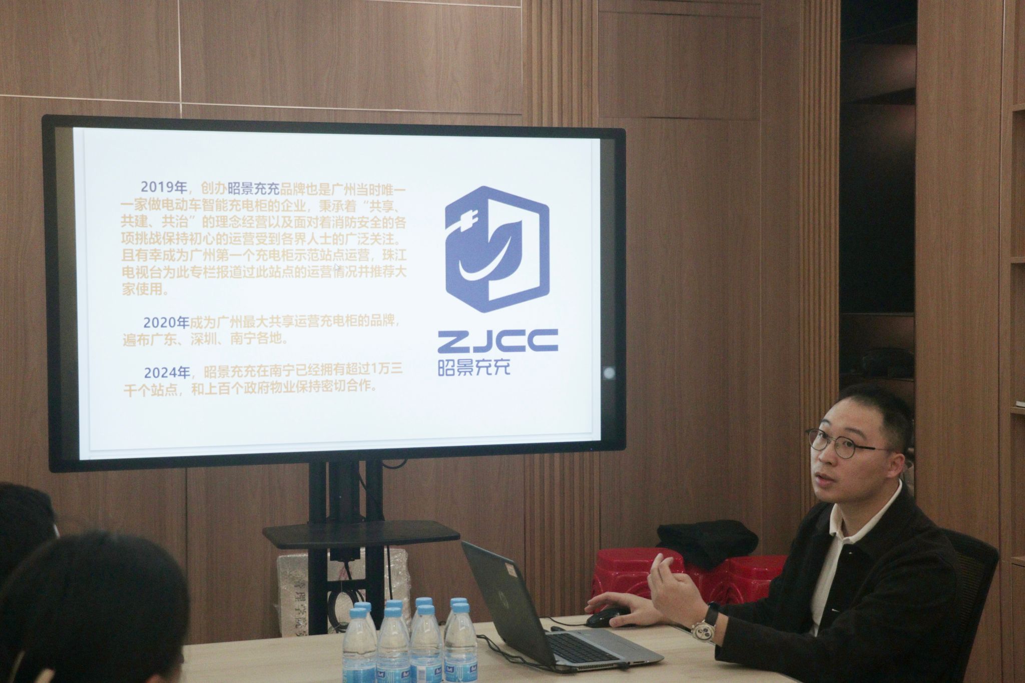 在走访过程中,昭景充充董事长李晓斌向师生介绍了企业在电池安全管理、智能保管系统、物体识别与安全检测、无人机视觉识别与巡防技术等方面的核心成果。他表示,公司始终专注于新兴技术服务研发与应用,在无人机智能化和高效化场景落地上形成了显著优势,相关服务产品已广泛应用于公共场所与私人领域。李晓斌董事长希望同学们借此机会加深对行业前沿的了解,为未来的职业规划拓展思路。