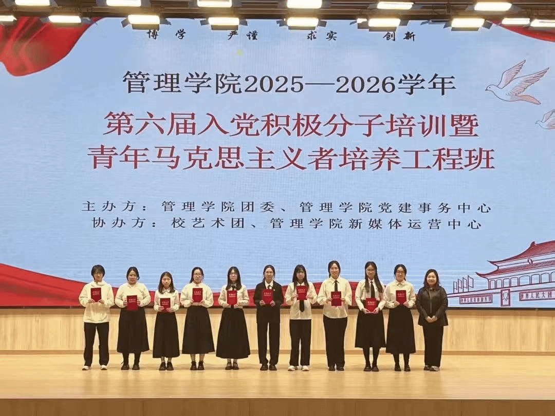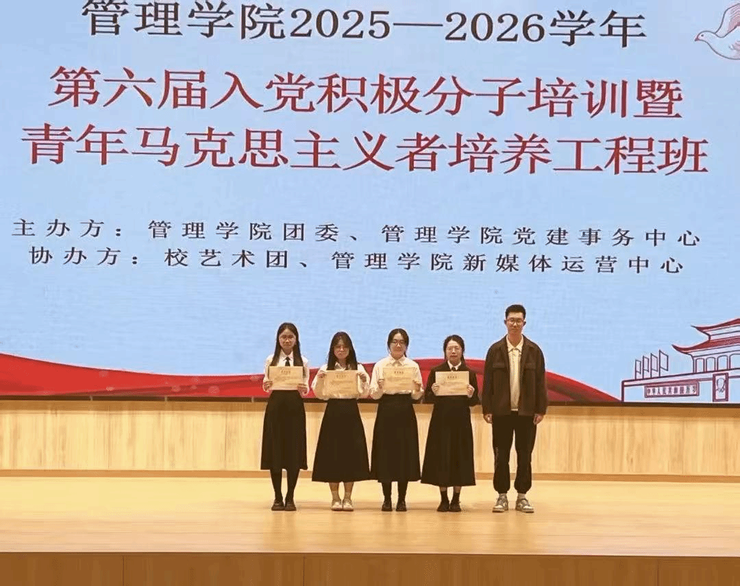 最后,会议在隆重的颁奖仪式中落下帷幕。主持人逐一宣读本届青马班优秀学员与优秀小组的获奖名单,这份沉甸甸的荣誉既是对获奖者个人勤奋与才能的充分肯定,更是对他们所展现的新时代青年精神的嘉奖,是对当代优秀成员的高度认可。在热烈的掌声中,我们看到了青年榜样的力量,期望所有学员能将此次培训收获内化于心、外化于行,以今日之荣誉为起点,在未来新征程中持续发光发热,为集体发展贡献青春力量。愿这份荣耀化作前行的动力,激励全体青年在奋斗中绽放更加绚丽的光彩。
