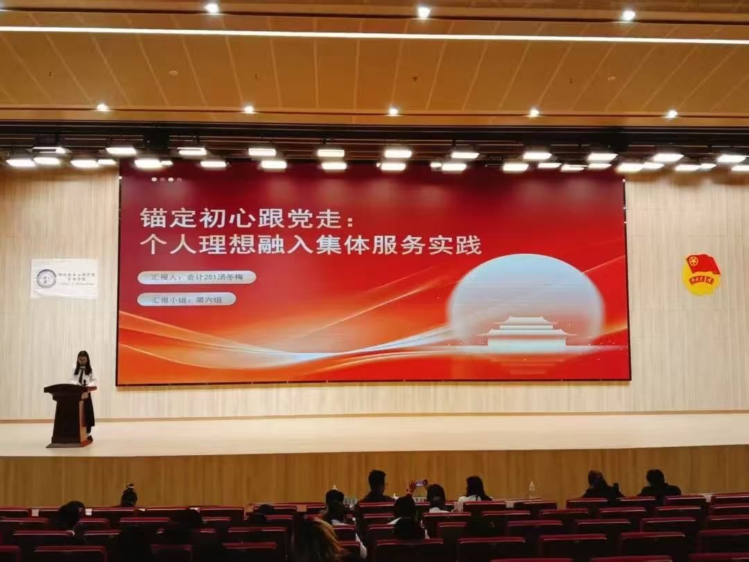 在聚焦“个人理想如何融入集体服务”的汇报中,小组代表以清晰的脉络层层深入:首先点明个人理想融入集体服务是历史发展的必然选择,进而结合数字时代背景,探讨技术革新如何强化这一要求,并借助廖仲恺夫妇的典范,阐释了理想照进现实的具体路径。汇报最终明确结论:唯有将“小我”融入“大我”,方能在服务国家的实践中成就人生,实现个人价值的最大化。