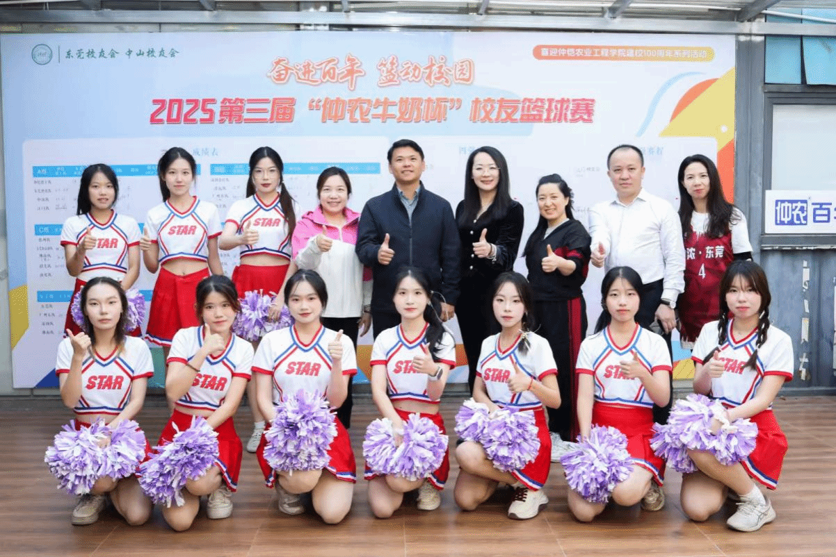 近日,仲恺农业工程学院海珠校区林书豪篮球馆内热闹非凡,第三届“仲农牛奶杯”校友篮球赛火热开展。管理学院艺术团(啦啦队)化身赛场“青春能量站”,以专业的表演、饱满的热情为赛事添彩,用实际行动服务校友返校活动,展现出管院学子的专业素养与青春风采。