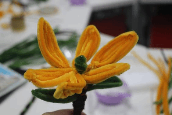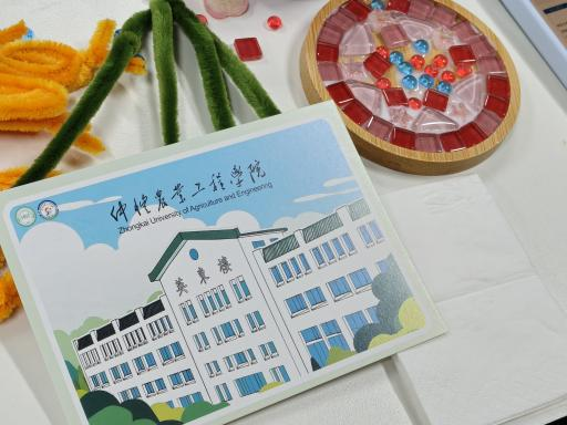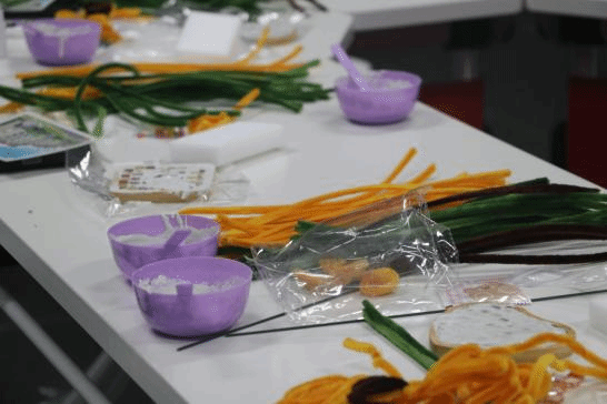 活动现场暖意融融,创意飞扬。同学们化身“指尖花艺师”,手握柔韧灵动的扭扭棒,循着弯折、缠绕、拼接的细致步骤,悉心勾勒花型、雕琢花瓣,普通的扭扭棒在一双双巧手下渐渐绽放出栩栩如生的花束,定格成永不凋零的浪漫与敬意。除此之外,同学们还是“创意设计师”,他们将真挚祝福融入方寸杯垫之中:大家自由搭配色彩、构思图案,在专注的拼接与粘贴间,把普通材料转变为兼具实用性与观赏性的生活好物,每一件作品都承载着独特的审美与纯粹心意,诉说着对中医工作者的诚挚感谢。