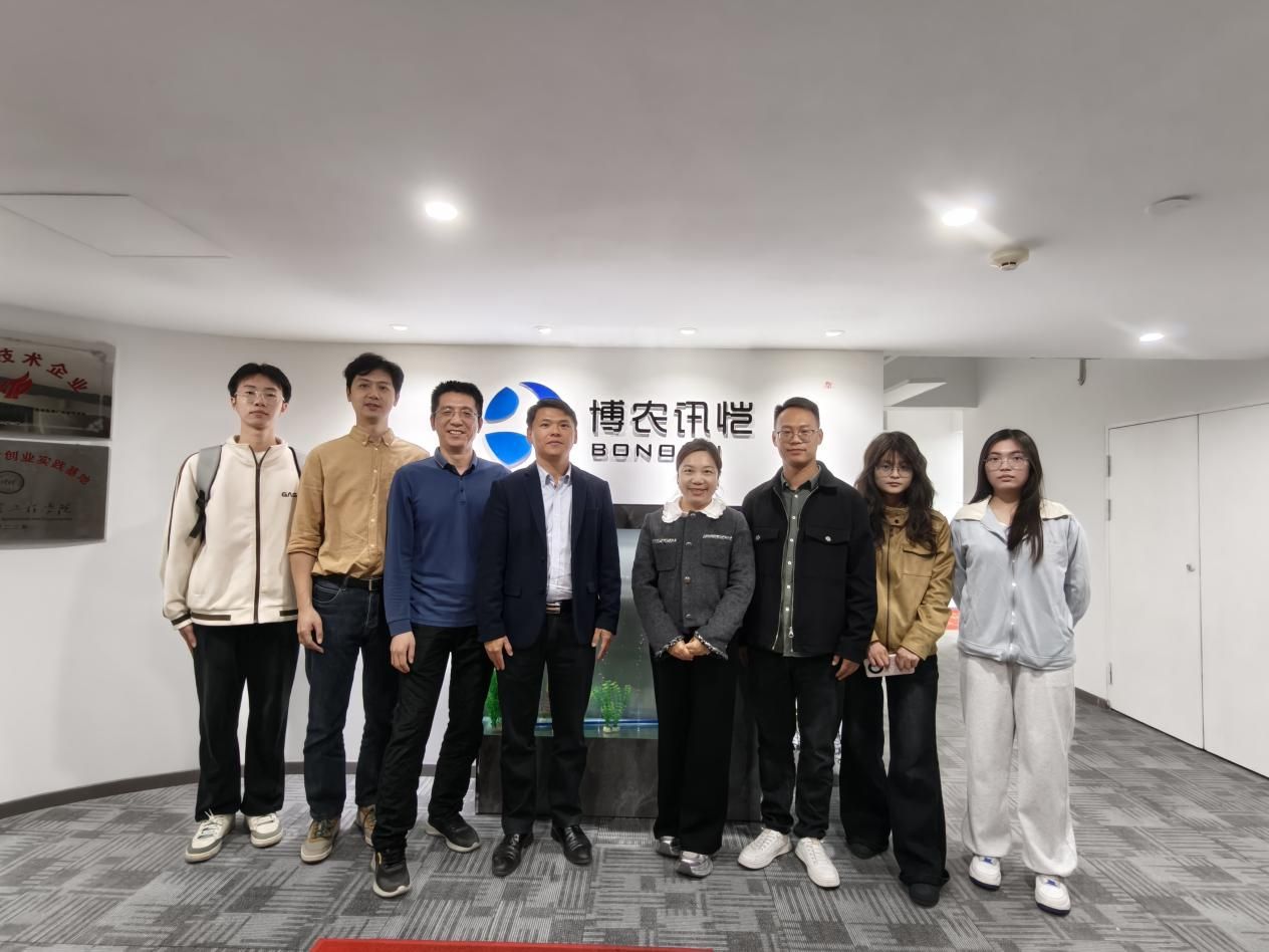 当日下午,师生队伍马不停蹄到广州市博农讯恺信息技术有限公司。这是一家由仲恺校友创办的企业,交流现场洋溢着浓厚的母校情谊。校友代表在介绍公司发展时,深情表示始终不忘母校校训,坚持“做实事”的务实作风,专注于将信息技术与农文旅产业深度融合,并分享了公司在帮助客户实现“降本增效”方面的显著成效。