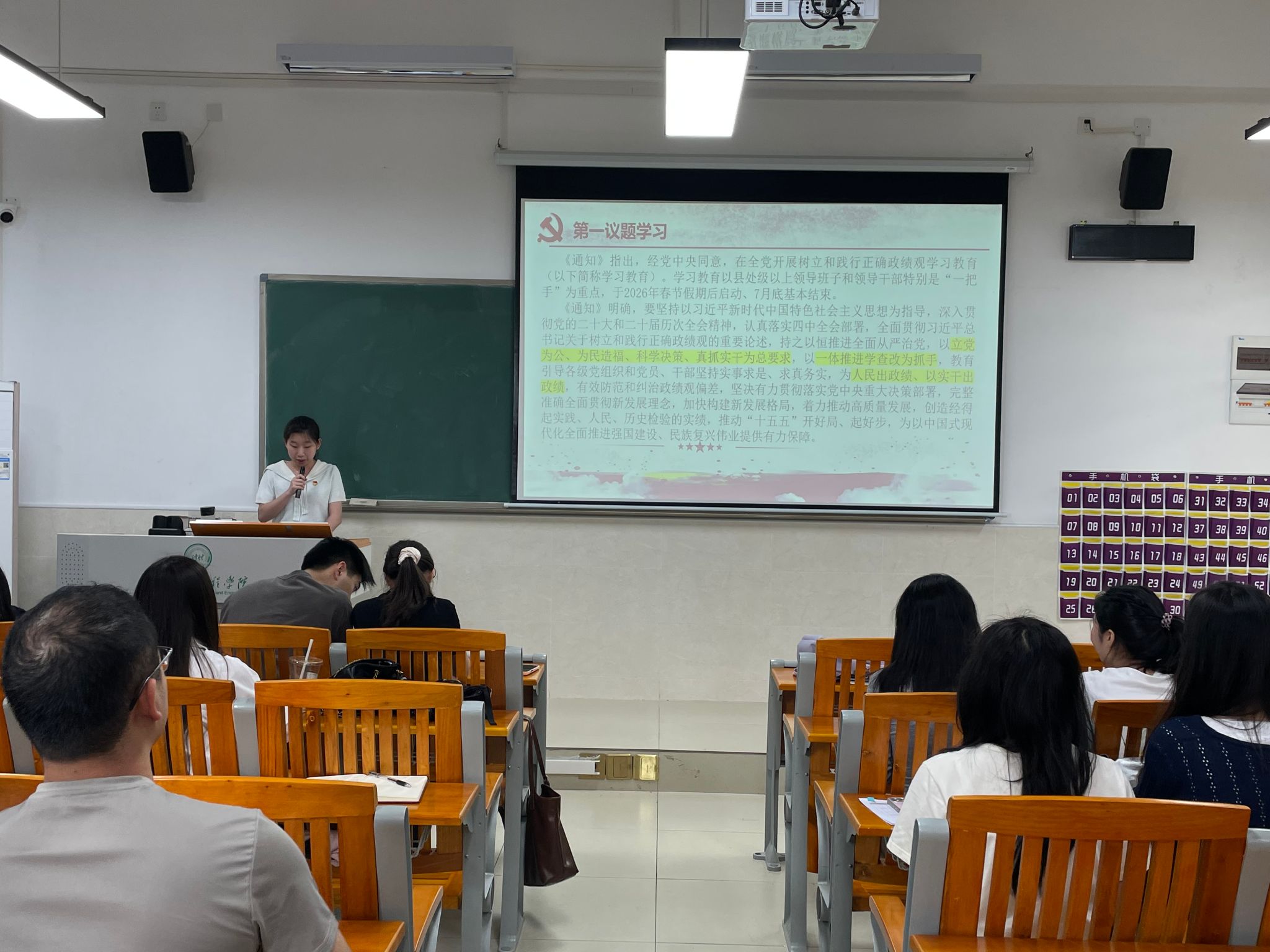 活动伊始,吴梅同志领学第一议题,学习习近平总书记关于树立和践行正确政绩观的重要论述,通过理解树立和践行正确政绩观的价值取向和重要标准,让全体党员深刻领会到要以立党为公、为民造福、科学决策、真抓实干为导向,切实筑牢思想理论根基,为推动“十五五”开好局起好步贡献力量。